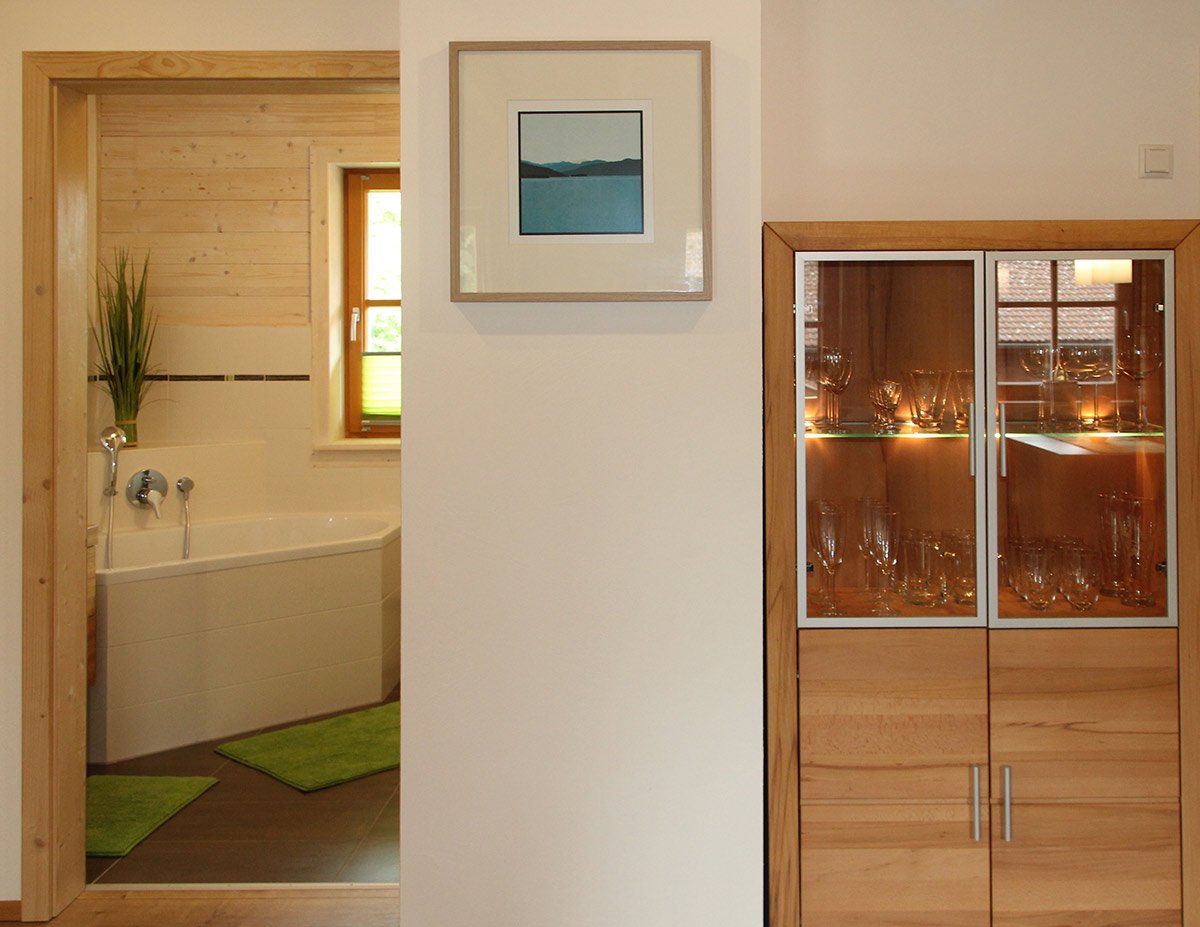 Die geräumige, helle, komfortable Wohnung in einem Holzhaus (Baujahr 2014) ist über einen separaten Eingang im Obergeschoss zu erreichen und bietet mit einer Gesamtfläche von ca. 90 m² folgende Ausstattung: